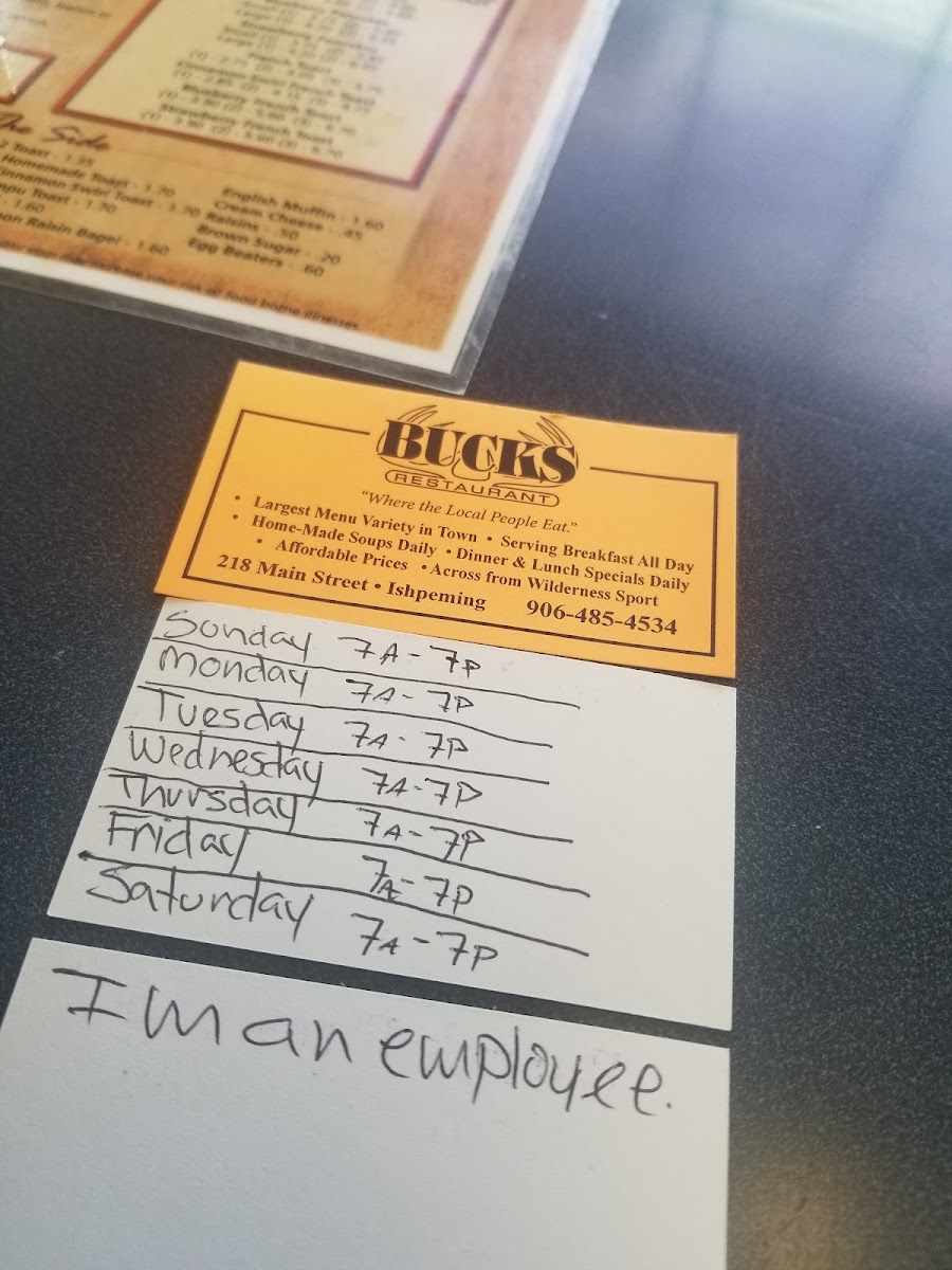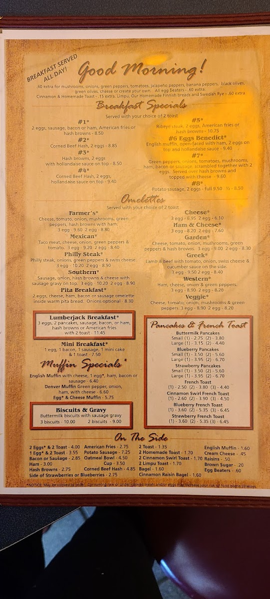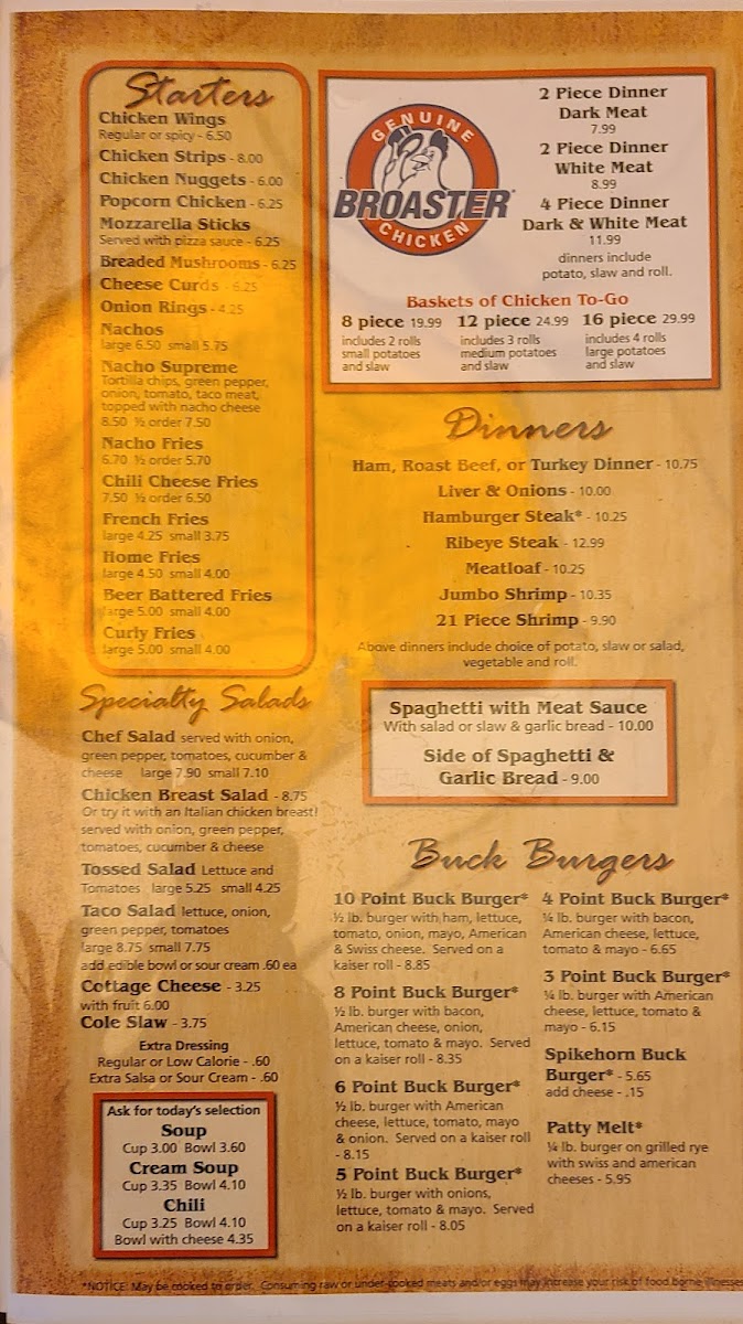 Welcome to Buck's Restaurant, an iconic gem nestled in the heart of Ishpeming, MI. Known for its classic diner ambiance, this restaurant offers a delightful array of dishes that cater to everyone’s cravings. Buck's menu shines with options like chicken wings, succulent super sandwiches like the Italian Beef, and breakfast favorites that include the famous potato sausage. Guests rave about the Denver Muffin and indulgent corned beef sandwich, showcasing the local flavor that keeps patrons coming back for more. The atmosphere is warm and welcoming, enriched by the dedicated staff who elevate the dining experience. From crispy onion rings to hearty meals, each dish reflects Buck's commitment to quality at an affordable price. Every visit promises not just a meal, but a taste of wholesome community dining.